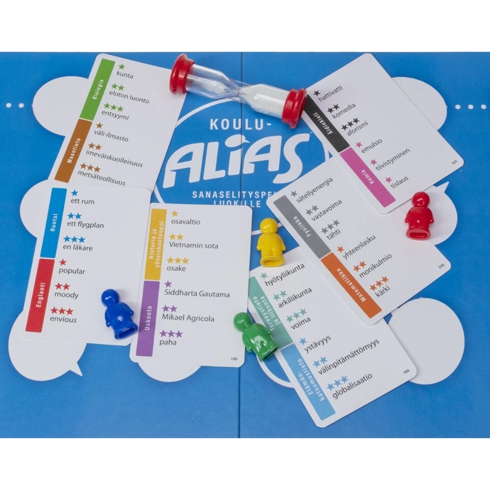 - Sisältää 400 korttia jaoteltuina oppiaineittain ja vaikeusasteittain.