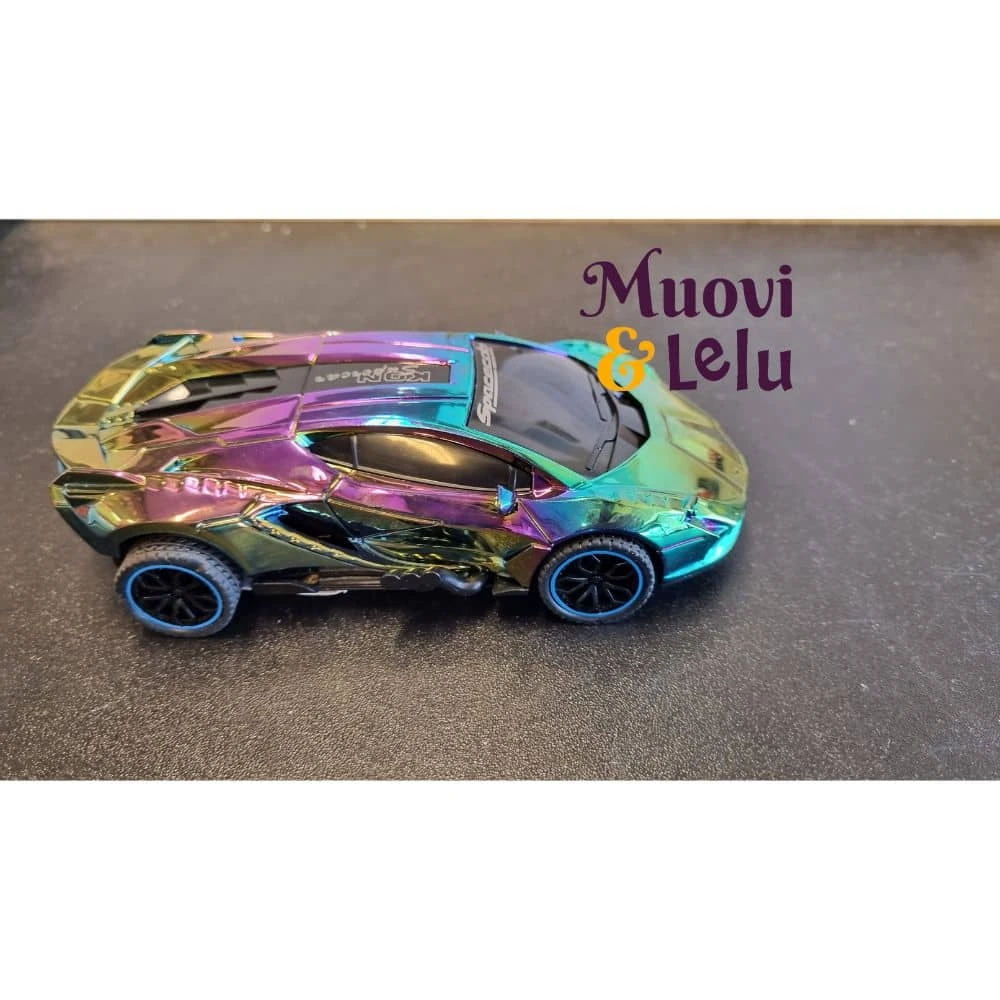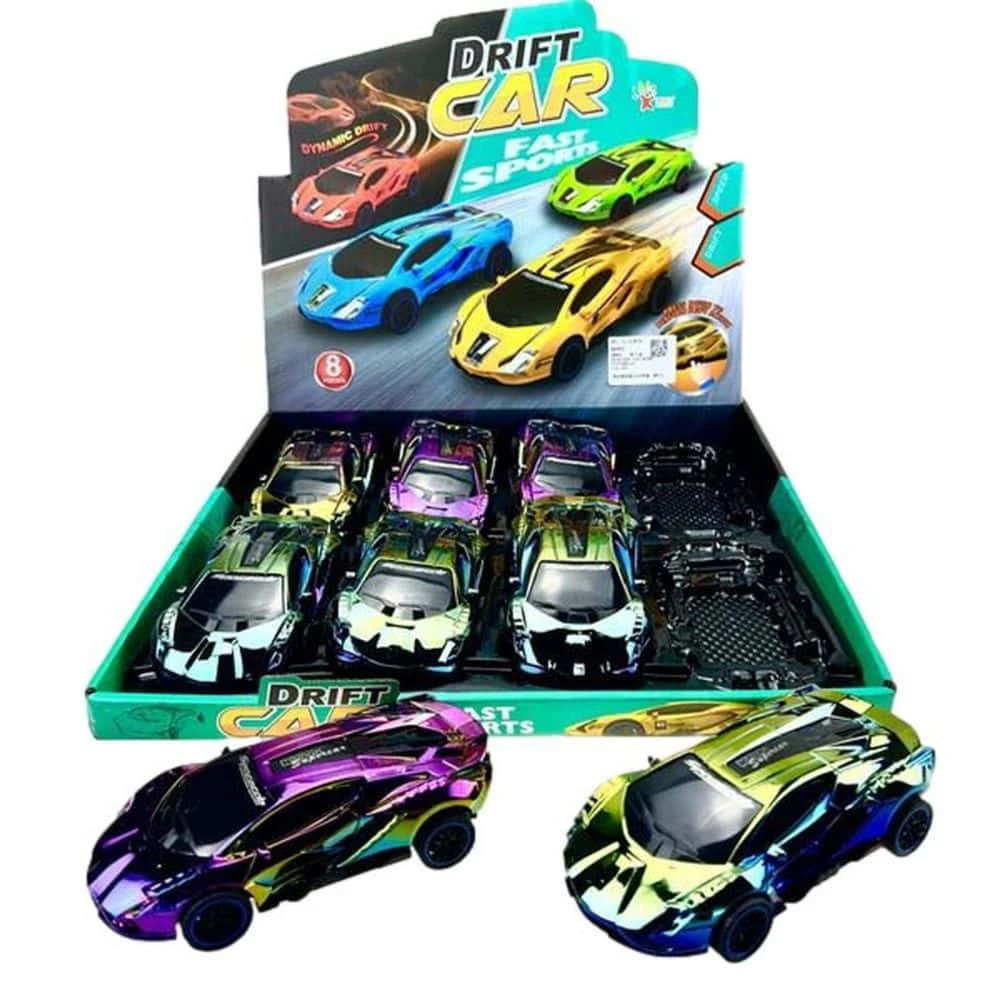 Oiva metallihohtoinen kitkamoottoroitu leluauto, joka driftaa.