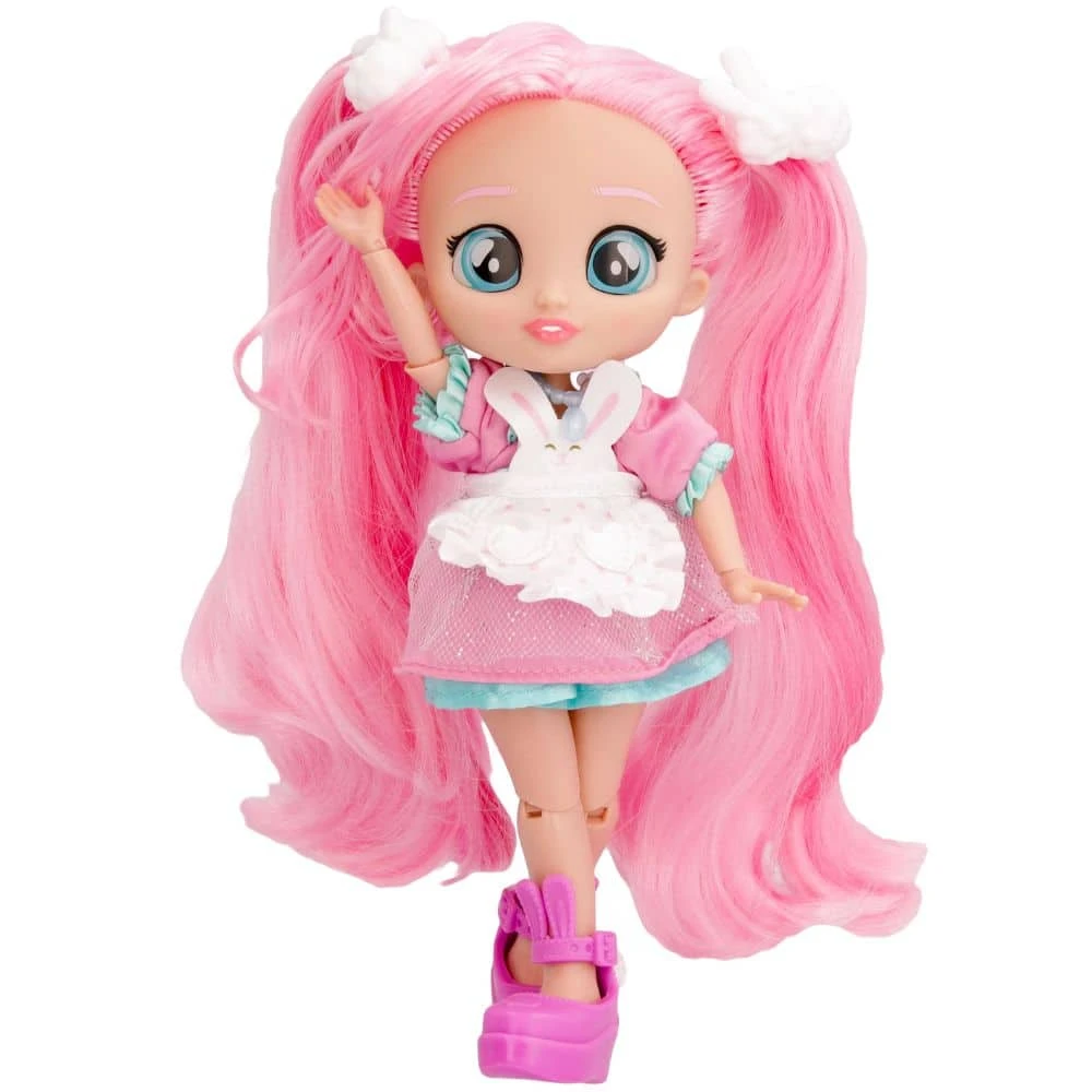 - Pakkaus sisältää nuken yksityiskohtaisella asulla, hiuskoristeen, laukun ja kaulakorun.