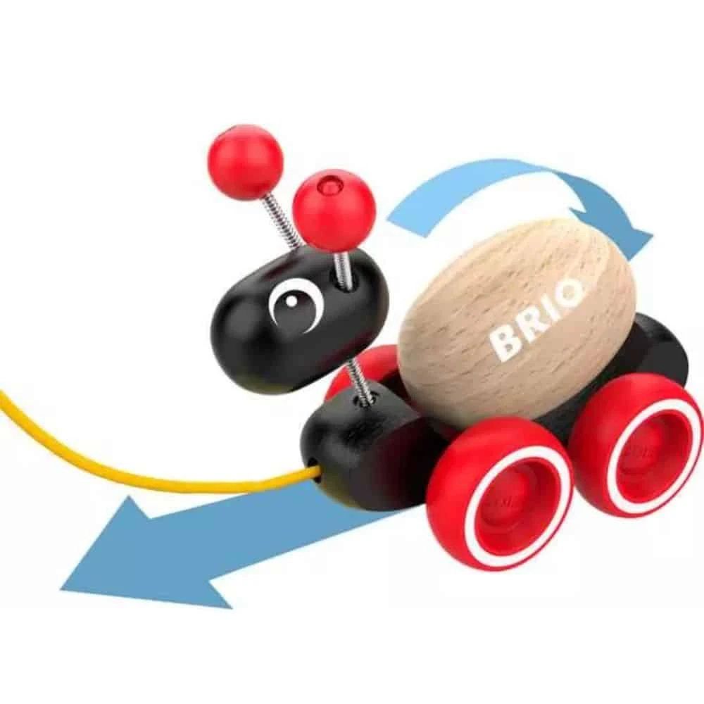 Leikkisä 30348 Vedettävä muurahainen on ihastuttava ystävä taaperolle. Muurahaisen pää keikkuu puolelta toiselle ja sen selässään kantama puinen muna pyörii lumoavasti liikkeessä. Tyylikäs lelu on myös kehittävä, sillä se kannustaa lasta harjoittelemaan kävelyä. Odotettavissa on monia nauruntäytteisiä hetkiä, kun kaksikko lähtee yhteiselle seikkailulle.