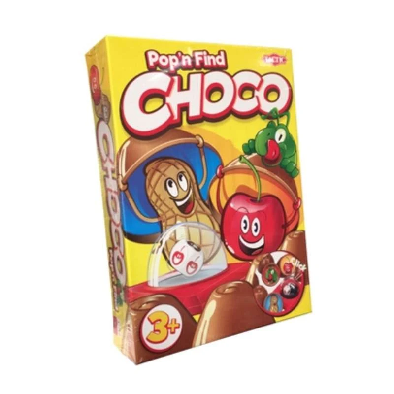 Kuka kerää eniten suklaanappeja? Riemastuttavan hauska muistipeli perheen pienimmille! Leikki-ikäisten suosikkipeli, jossa Pop-O-Matic-noppa näyttää, nostatko kirsikan vai maapähkinän. Pelissä on hauskuuden lisäksi myös jännitystä: varo suklaata ahmivaa toukkaa! Klassikko jo vuodelta 1978, hauskuuttanut lapsia jo kahdessa polvessa!