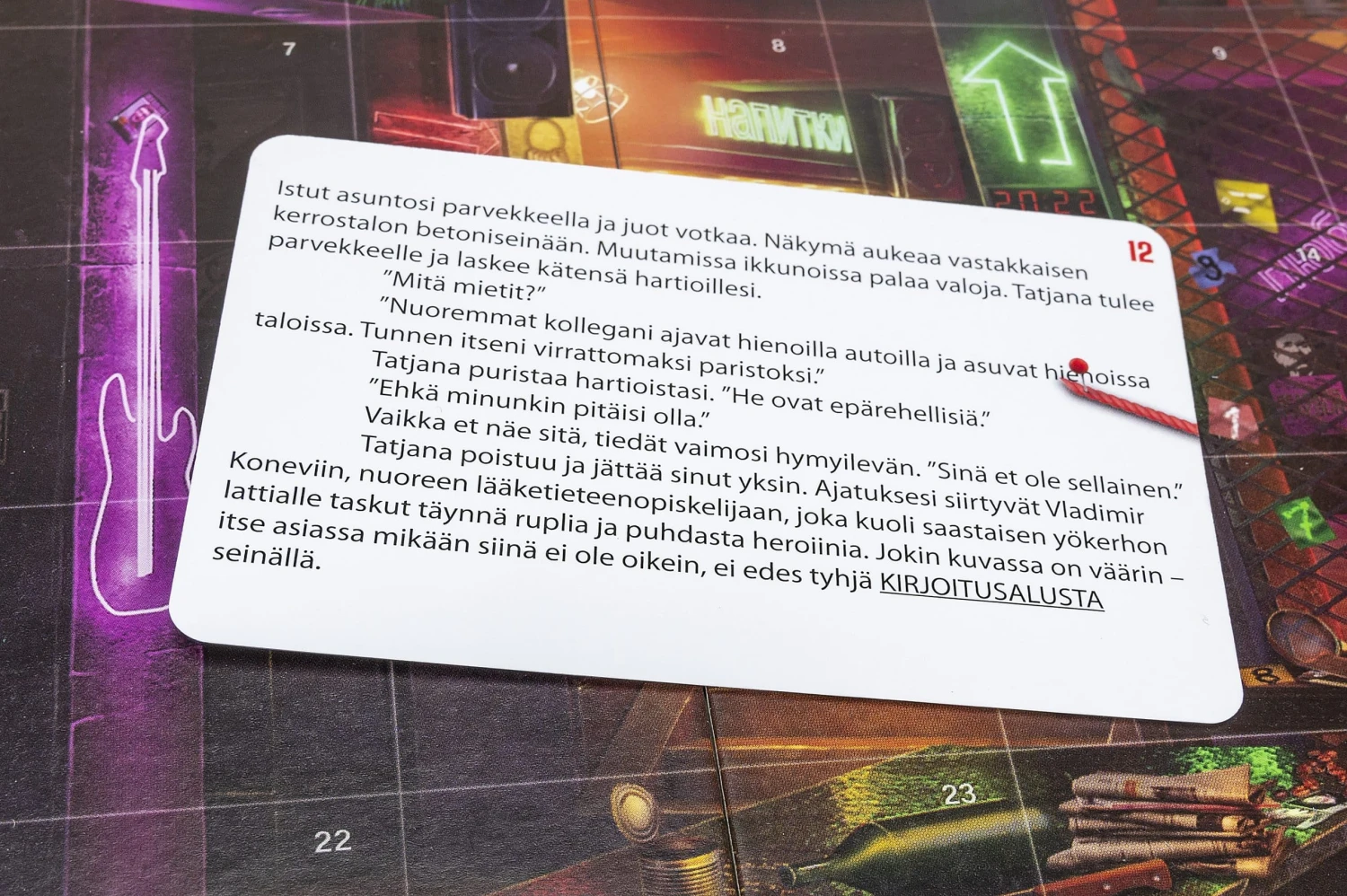 Moskovalaisesta diskosta löytyy ruumis. Uhrin henkilöllisyys ja rikoksen motiivi selviävät uutteralla salapoliisityöllä, mutta muista että kaikkien todistajien sanaan ei voi luottaa. Pelaajat etenevät seuraten tarinaa, keräten todisteita ja toimien kuten oikeat etsivät. Pelata voi yksin tai joukkueena.