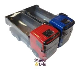3-akselinen Volvo FH maansiirtoauto, jossa kippi. Autossa on avattava takalaita, takapyöräjousitus ja sivupeilit. Värilajitelma, tuotteen koko 32 cm, kalvopakkaus.