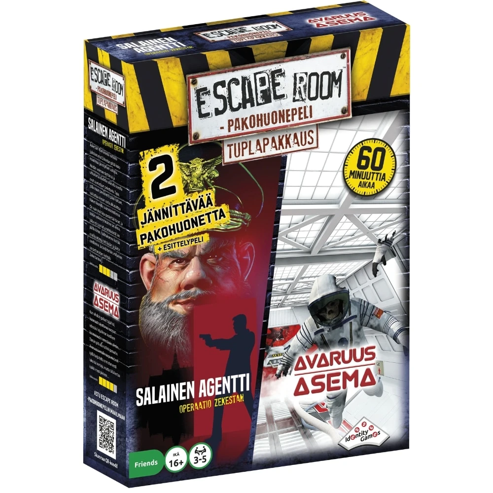 - Lock yourselves into the Escape Room game and solve the code before time runs out. Two exciting new games Salainen agentti and Avaruusasema and a tutorial game. Includes tasks and clues, time counting chrono decoder. Batteries 3 x AA not included. Language: Finnish. 16+