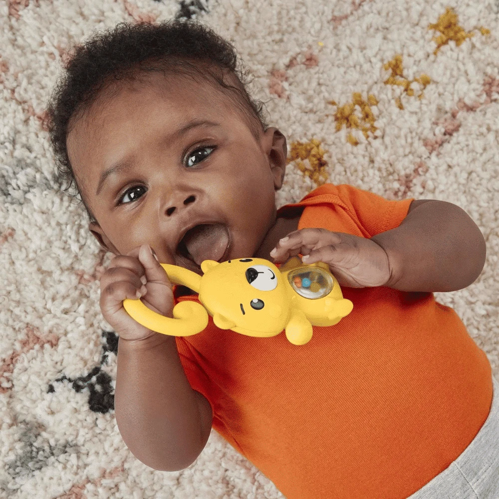 Baby’s activity toy is easy-to-grasp and has sensory benefit and/or functions which are nice to explore. 3 months+.