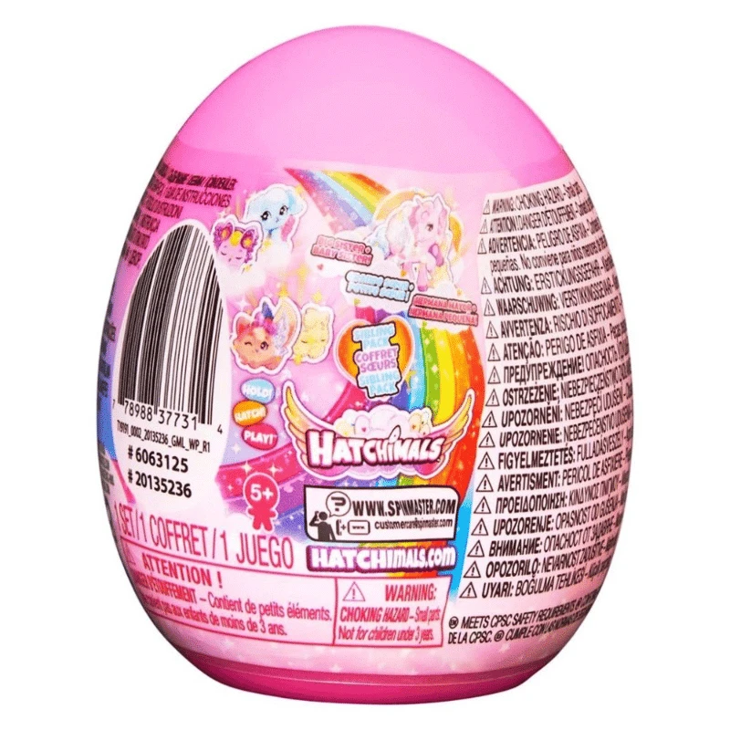 Laajenna Hatchimals CollEGGtibles kokoelmaasi ihanilla sisaruksilla aivan uusista, suloisista Hatchimals perheistä. Jokaisella perheellä on oma uniikki ulkonäkö ja heidän lempiharrastuksiinsa liittyvä teema. Hatchimals Perheet, kuten Kissa Tanssijat, Leijona Taiteilijat, Lepakko Muusikot, harvinaiset Koira Pilotit, superharvinaiset Kettu Kauneuskisatähdet ja muita- ne ovat kaikki niin söpöjä. Siblings- paketti on täydellinen tapa aloittaa kokoamaan perheitä. Jokaisessa Siblings -paketissa on uusi Hatchimals muna täynnä hauskoja yllätyksiä: yksi Iso Lapsi, yksi Vauva, siivet Isolle Lapselle ja uudelleen käytettävä muna, josta tulee mukava oleilupaikka. Yllätys on se mitkä Hatchimals sisarukset saat. Riko munan edessä oleva sydän paljastaaksesi Ison Lapsen, sitten avaa takaosa tavataksesi pakettisi Vauvan. Munan sisältä löydät myös Ison Lapsen siivet ja taustakuvan, jonka voi taitella leikkitilan taustalle leikkejä varten. Siivet on helppo kiinnittää Siblings- pakkauksen Isolle Lapselle. Leikkien jälkeen voit pitää hahmoja esillä munassa. Yli 60 uutta Hatchimalsia ja 10 Siblings- pakkausta kerättävänä (lelut myydään erikseen). Kerää kaikki 8 Hatchimals Perhettä. Hatchimals CollEGGtibles yllätyslelut ovat kivoja lahjoja kaikille yli 5- vuotiaille lapsille. Vie kotiisi sisarusrakkautta Hatchimals CollEGGtibles Siblings- paketilla. 5+.