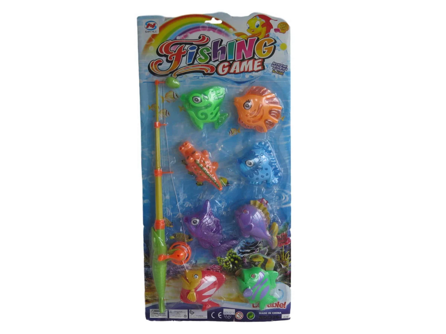 Sisältää vavan jossa magneetti, ja 8 kalaa jossa on magneetti.