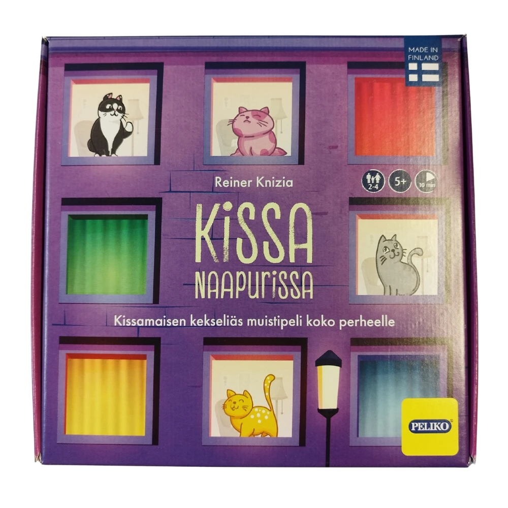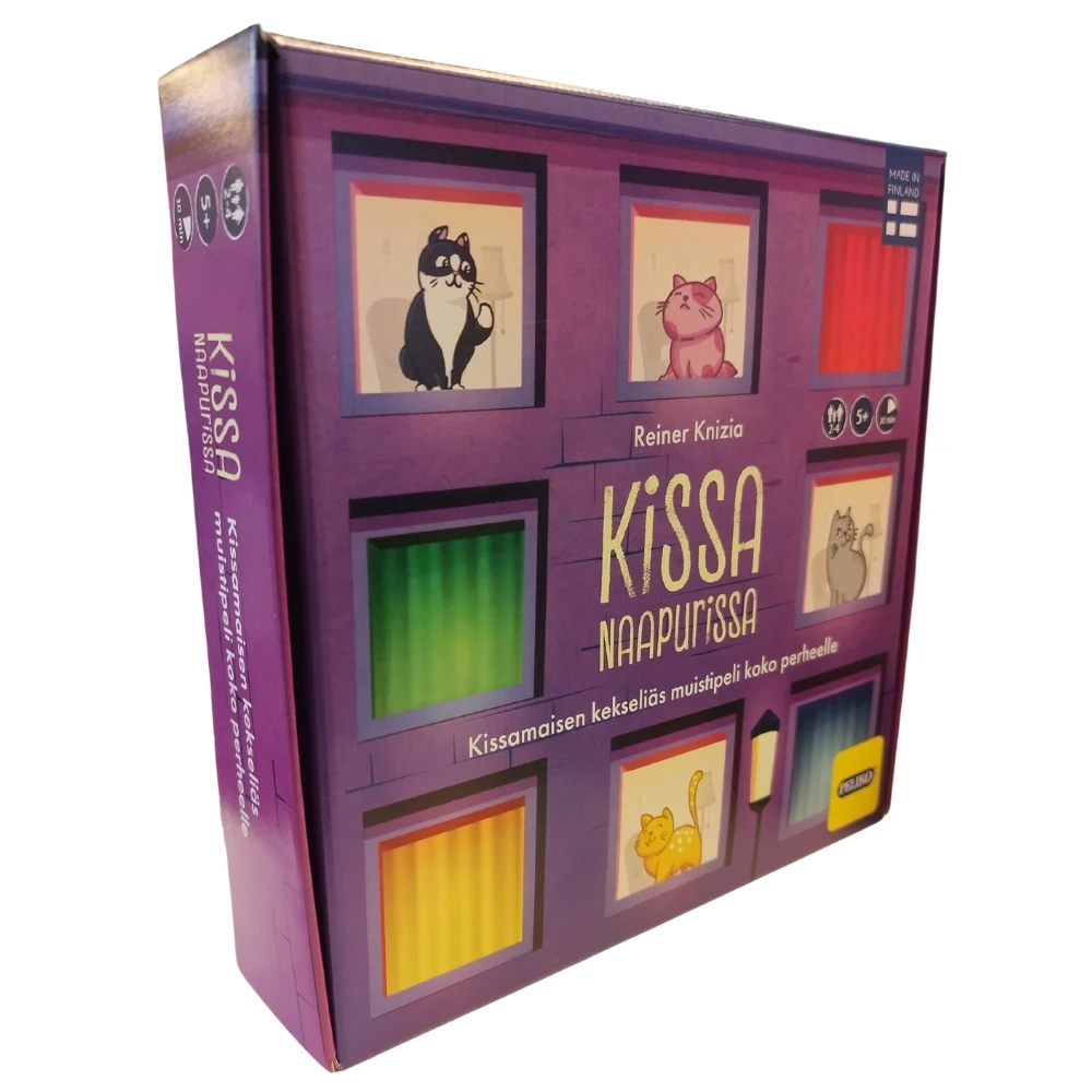 Hyvällä muistilla ja ripauksella tuuria pärjää pitkälle tässä muistipelissä, jossa muistilaattojen määrä ei vähene, ja kääntöpuolellakin on väliä! Kissamerkit sen sijaan vähenevät, ja se, joka kerää eniten merkkejä, voittaa pelin. Kissa naapurissa on hauska koko perheen muistipeli, jonka säännöt on helppo oppia!