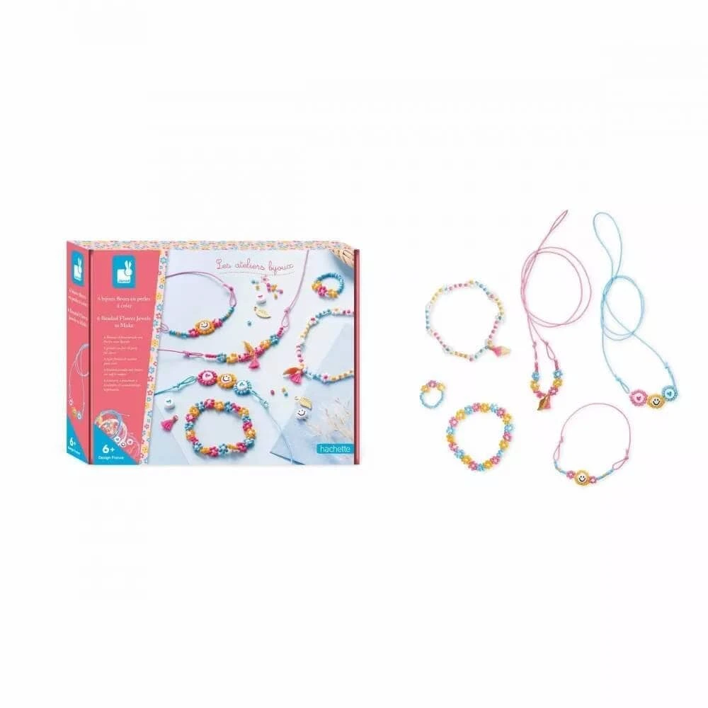 Korut, jotka saavat sinut hymyilemään! Janod-koruaskartelusetti antaa 6-vuotiaille ja sitä vanhemmille lapsille mahdollisuuden kokeilla taitojaan kuuden kukkakorun tekemisessä: ihanteellinen tee itse -korusetti, joka stimuloi luovuutta ja tarkkuutta. Pakkaus sisältää materiaalit 3 rannekorun, 2 kaulakorun ja yhden sormuksen tekemiseen. 6 korun tekemiseen kuluu noin 3-4 tuntia. Luova harrastus kehittää hienomotorisia taitoja, tarkkuutta ja keskittymiskykyä.