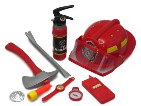 - Sisältää kypärän, kirveen, sorkkaraudan, jauhesammuttimen, kellon, rintamerkin, radiopuhelimen ja taskulampun. Palomies on eri mies! Palokuntaleikkiin varusteet.