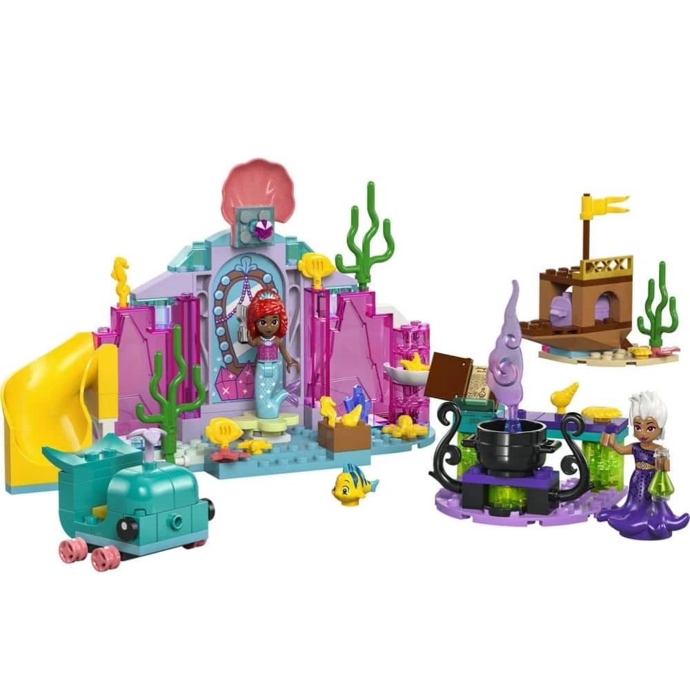 - Rakennuslelusetti – Disney-rakennuslelu sisältää valasta esittävän kulkuvälineen, laivanhylyn, aarrearkun sekä alueen pöytineen, kattiloineen ja taikajuomapulloineen Ursulaa varten