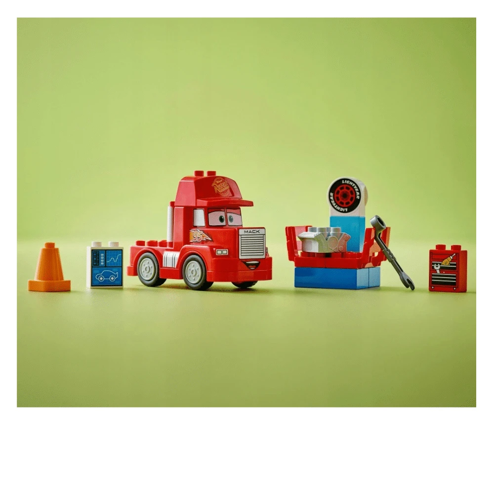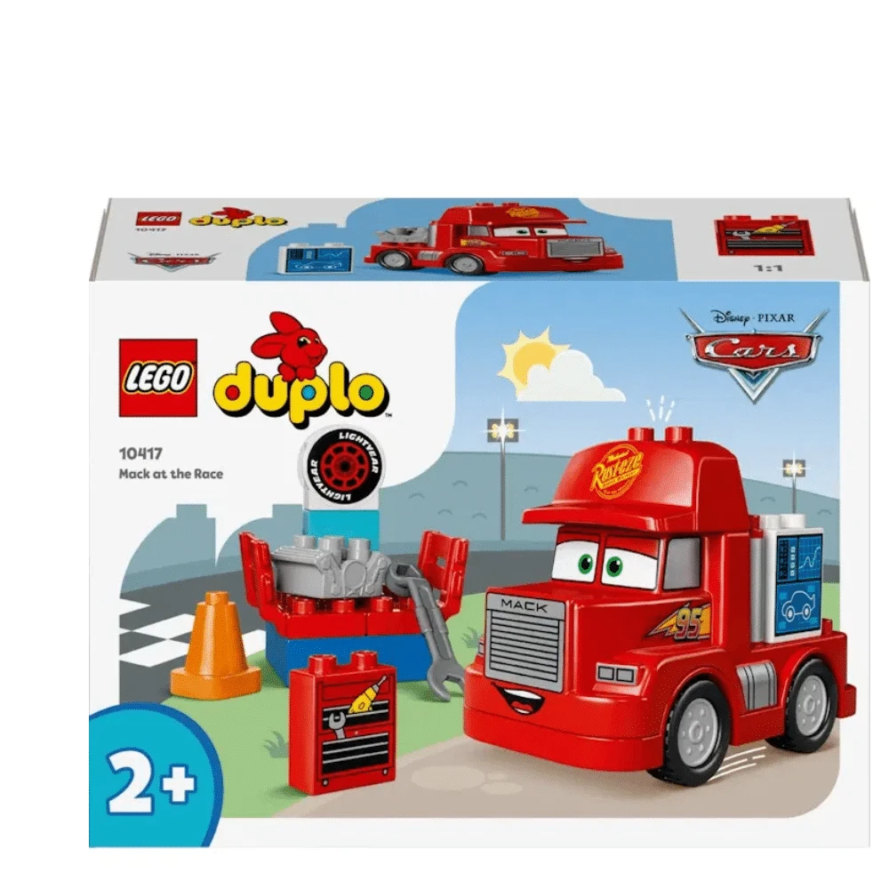 - LEGO® DUPLO® kuorma-auto ja luovia tarvikkeita – Setti sisältää Disneyn ja Pixarin Autot-elokuvista tutun Make-kuormurin liikuteltavan pienoismallin, palikoista rakennettavan virityspöydän, moottorin ja kartion