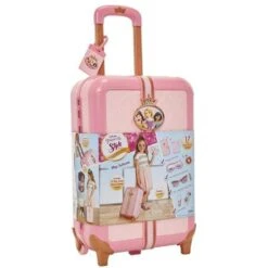 Kaikki matkatavarasi peitetään ja säilytetään täydellisesti ah-niin tyylikkäässä ja päivitetyssä leikkilaukussa. Teeskentele suojaavasi tavarasi väärennetyllä yhdistelmälukolla. Disney Princessin leikkisetti vaaleanpunaisella matkalaukulla. Siinä on passi ja lippu. Leikkisetissä on unimaski, kuulokkeet, aurinkolasit, ja muita tarvikkeita.