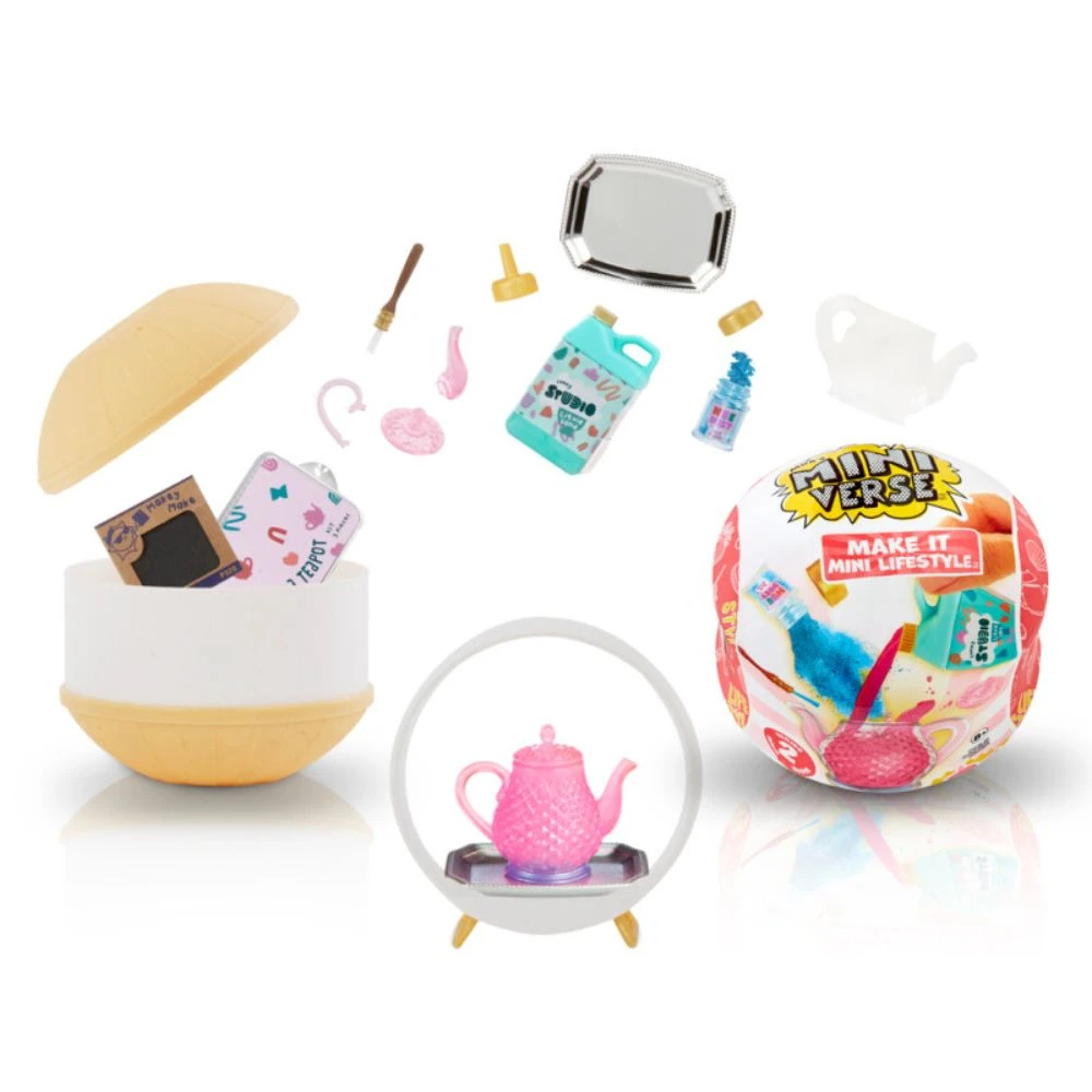 Avaa Miniverse yllätyspallo, jonka sisältä paljastuu realistisia minitarvikkeita. Suunnittele minikokoinen Miniverse sisustustarvike, jonka seos kovettuu UV valossa ja voit laittaa sen esille. Mukana tulevasta keräilyesitteestä näet minkälaisia muita tuotteita löytyy.