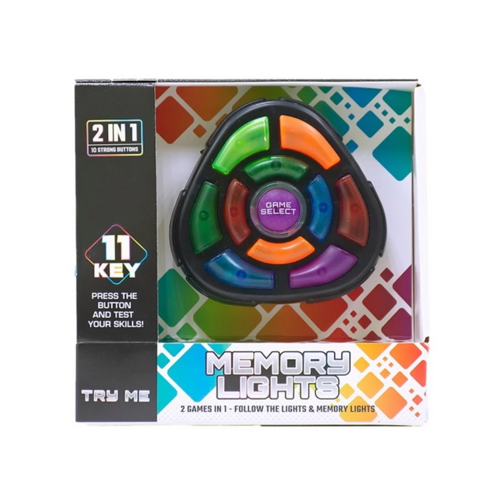 Hauska klassinen muistipeli sopii mukaan matkalle tai lastenhuoneen viihdykkeeksi! Pelissä valot ja äänet, sekä kaksi eri pelimuotoa (seuraa värejä ja muistipeli).