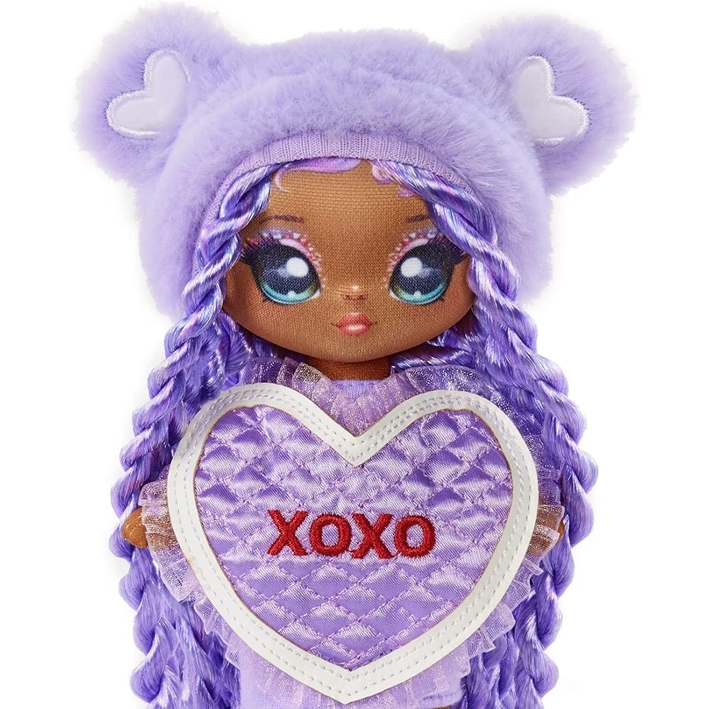- Kauniilla Eva Evermore-muotinukella on kaikki violettia! Liilat letitetyt yli maahan ulottuvat hiukset, suuret maalatut silmät ja päässään suloinen nalle vaikutteinen pörröpipo. Nukella on yllään ”xoxo”-tekstillä koristeltu sydän röyhelöpaita ja jaloissaan violetit kiilakorot. Kampaa nuken pitkiä hiuksia mukana tulevalla kammalla. Nukella on pehmeä kankainen pää ja vartalo. Sen pipo ei ole irrotettavissa. Upea lahjaidea!