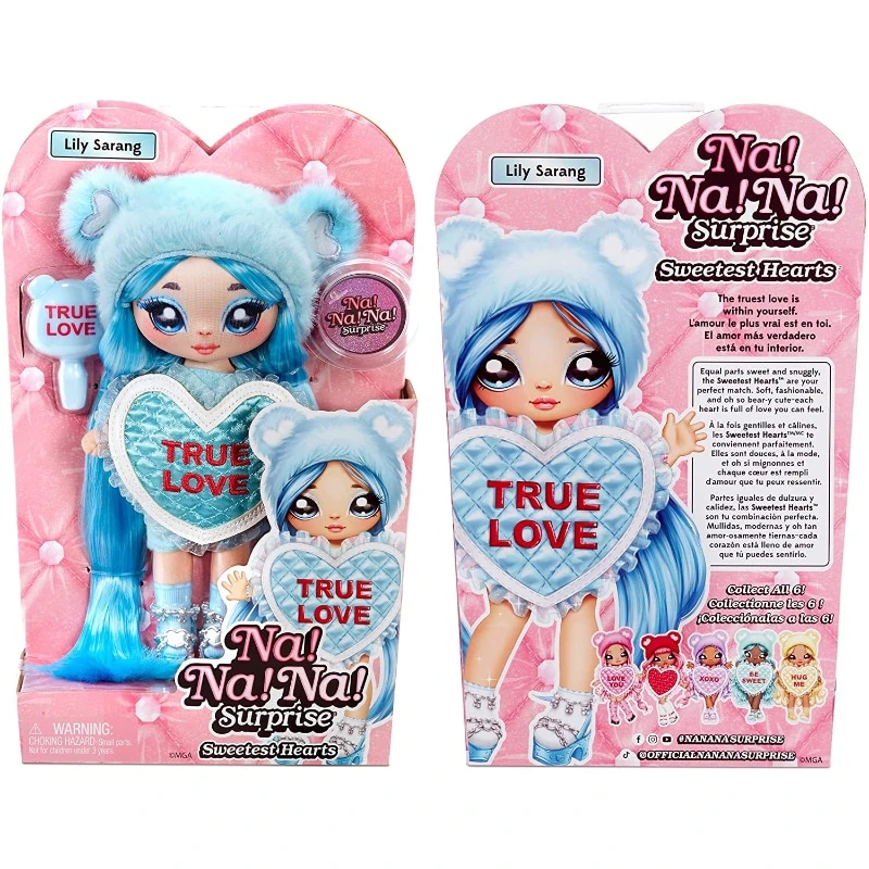 - Kauniilla Lily Sarang-muotinukella on kaikki vaaleansinistä. Vaaleansiniset upeat yli maahan ulottuvat hiukset, suuret maalatut silmät ja päässään suloinen nalle vaikutteinen pörröpipo. Nukella on yllään ”true love”-tekstillä koristeltu sydän röyhelöpaita ja jaloissaan siniset korkokengät. Kampaa nuken pitkiä hiuksia mukana tulevalla kammalla. Nukella on pehmeä kankainen pää ja vartalo. Sen pipo ei ole irrotettavissa. Upea lahjaidea!