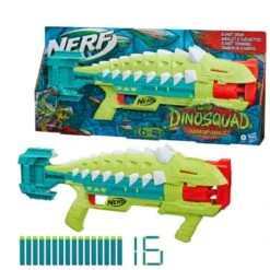 Ota haltuusi kaikkien aikojen mahtavimpien dinosaurusten voima ja ampaise syvälle seikkailuun. Pehmonuoliaseessa on kahdeksan nuolen pyörivä rumpulipas. Voit laukaista yhden nuolen kerrallaan tai kaikki kahdeksan nuolta sarjassa. Lataa rumpu ja laukaise nuoli liikuttamalla pulttilukkoa taakse ja eteen. Sarjatulitus hukuttaa vastustajan tulivoimaan: laukaise kaikki kahdeksan nuolta nopeasti pitämällä liipaisin pohjassa ja liikuttamalla pulttilukkoa jatkuvasti taakse sekä eteenpäin.
