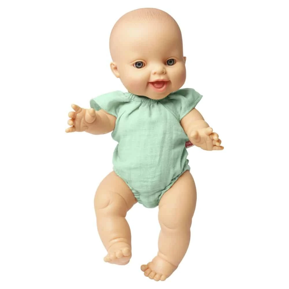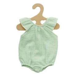 Käytettiinpä sitten housujen alla, housujen tai hameen kanssa, kevyenä ja ilmavana kesäasuna tai yöasuna – Pastellimintun sävyinen nuken body sopii aina täydellisesti. Pehmeä musliinikangas on peräisin sertifioidusta luomuviljelystä ja tarjoaa sinulle turvallisen ja rajattoman leikkiajan nukkesi kanssa. Kauniit röyhelöt olkapäillä ja väljä istuvuus tekevät siitä ehdottomasti katseenvangitsevan asun. Laadukkaasta materiaalista valmistettu upea perusesine, jota ei pitäisi puuttua mistään nuken vaatekaapista. Takana oleva tarrakiinnitys varmistaa, että nuken body on erittäin helppo pukea ja riisua.