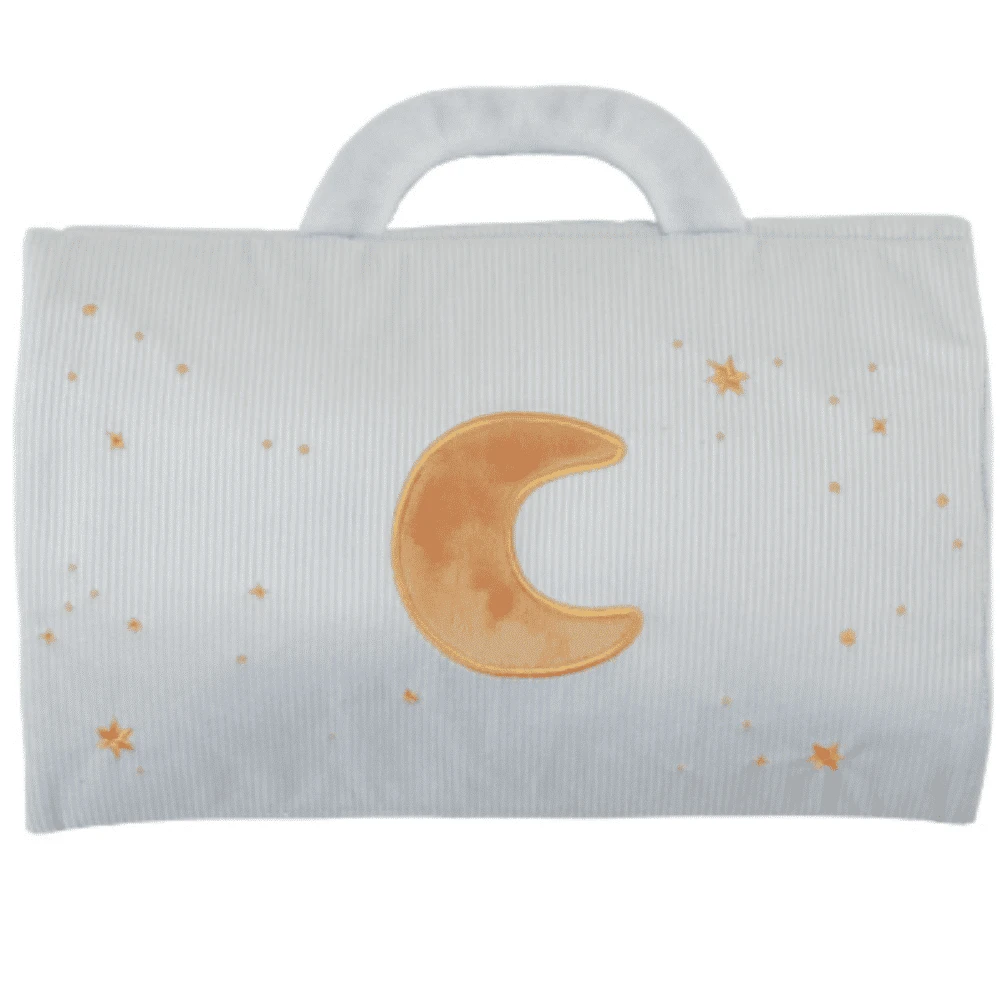 Tämä nukkeleikkisetti kannustaa leikkiä tuntien ajan. Pehmeä vaaleansininen matkalaukku avautuu sängyksi, ja siinä on upeimmat nukkumistarvikkeet. Pikkulapsesi voi pukea Rosan pyjamaan, valmistautua nukkumaanmenoa varten hammasharjan ja hammastahnan avulla, käpertyä Pikku Hanhen kanssa ja lukea mukana tulevasta kirjasta iltasatua eläinkuvituksineen. Kun on aika mennä nukkumaan, pikkulapsesi voi pukea päälleen Rosan unimaskin ja peittää hänet nallehuovalla.