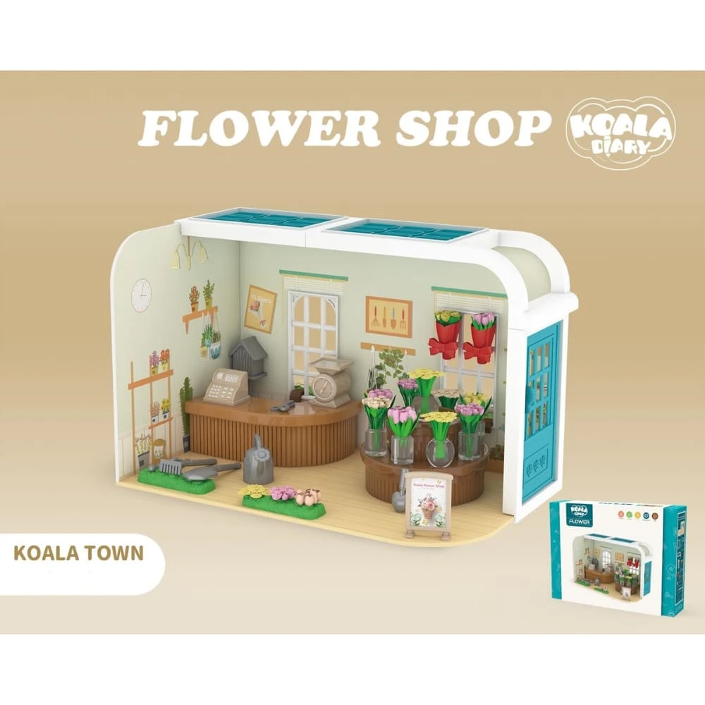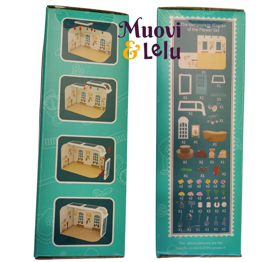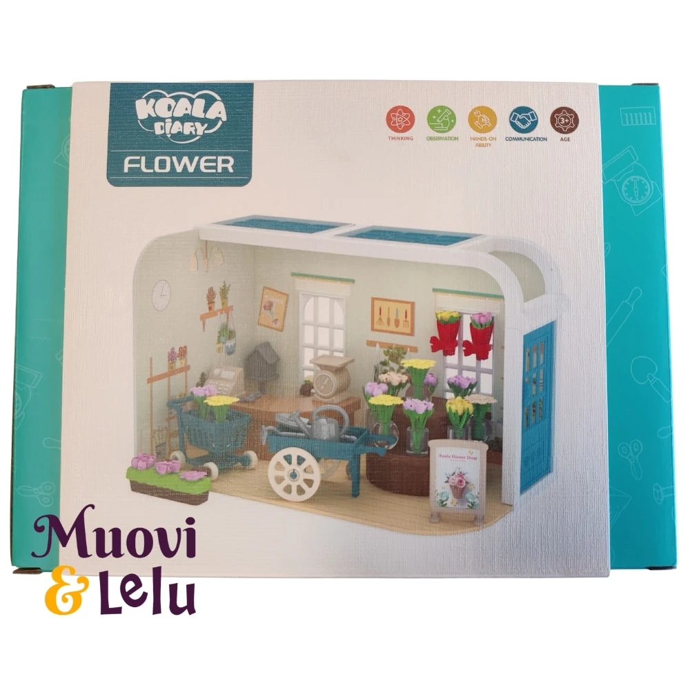 Täysin valmis pikkuhuone nukkekotileikkiin! Leiki sellaisenaan tai hanki useampi huone ja luo nukkekoti kokonaisuus! Tämä kukkakauppana toimiva kokonaisuus pitää sisällään toinen toistaan kauniimpia kukkia maljakoissaan. Mukana tulee runsaasti puutarhatyökaluja, kukkakärry, kassakone ja kassapöytä sekä paljon muuta. Modulin ulkopuolella on kaunis tiilikuviointi, sekä kukkaruukut ikkunoiden alapuolella. Modulissa on aukeava ovi ja oven kohta on muunneltavissa.