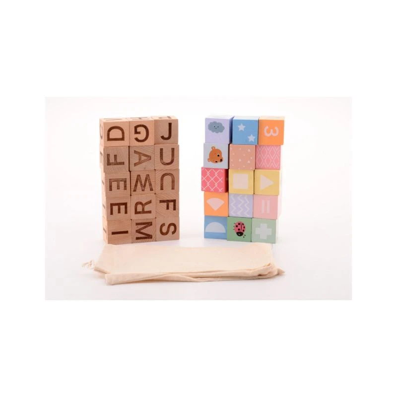 Palikat Aakkoset ovat erinomainen väline, jos haluat tukea lapsesi kielenoppimista ja varhaiskasvatusta hauskalla ja interaktiivisella tavalla. Pakkauksen mukana tulee kankainen säilytyspussi palikoille. Kuution malliset palikat ovat valmistettu korkealaatuisesta ja vastuullisesti hankitusta puusta
