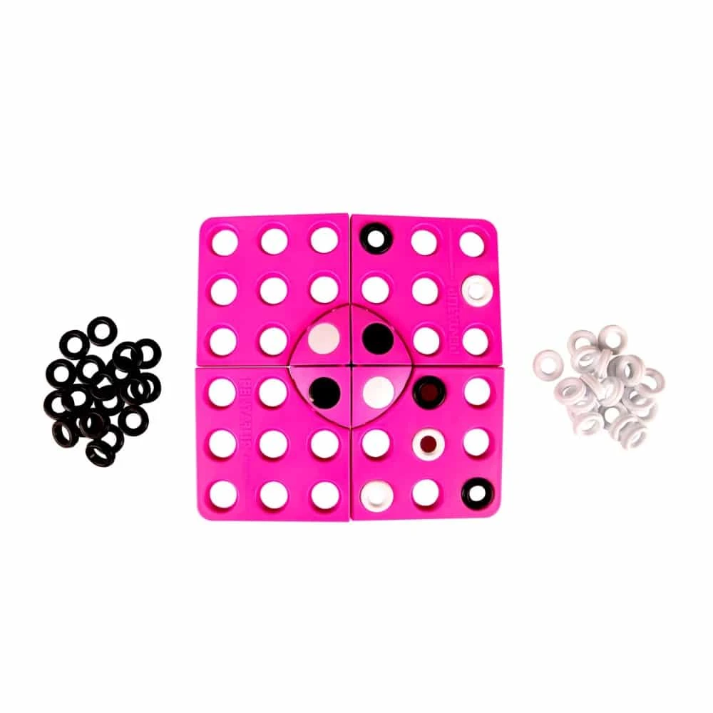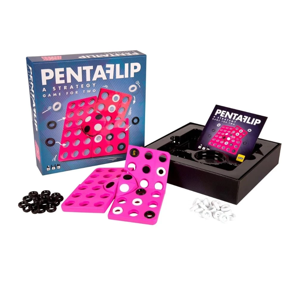 Peliko PENTAFLIP lautapeli on hauska ja jännittävä kahden pelaajan taktiikkapeli. Tavoitteena on saada viisi oman väristä rengasta riviin, ja voitat pelin. Ei niin helppoa, miltä kuulostaa; vastustajasi voi milloin tahansa kääntää yhtä tai kahta pelilaudan levyä ympäri ja vesittää suunnitelmasi! Jatkuvasti muuttuva pelilauta tuo pelin niin aloittelijoille kuin konkareille. Pelaa ja flippaa!