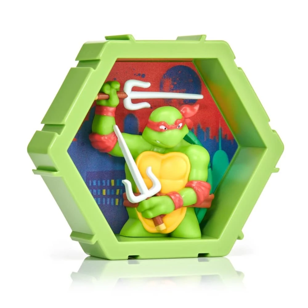 TMNT Raphael on ainutlaatuinen keräilyfiguuri, joka tulee ulos omasta maailmastaan ja astuu sinun maailmaasi! Maisematausta näyttää ponnahtavan Raphaelin maailmasta suoraan sinun maailmaasi upealla 4D-efektillä ja korkealla resoluutiolla. Kerää kaikki Teenage Mutant Ninja Turtles hahmo -kapselit ja liitä ne yhteen. Kapseleita voi yhdistää monin tavoin, jotta voit luoda oman ainutlaatuisen kokoelman seinällesi, hyllyllesi tai pöydällesi.