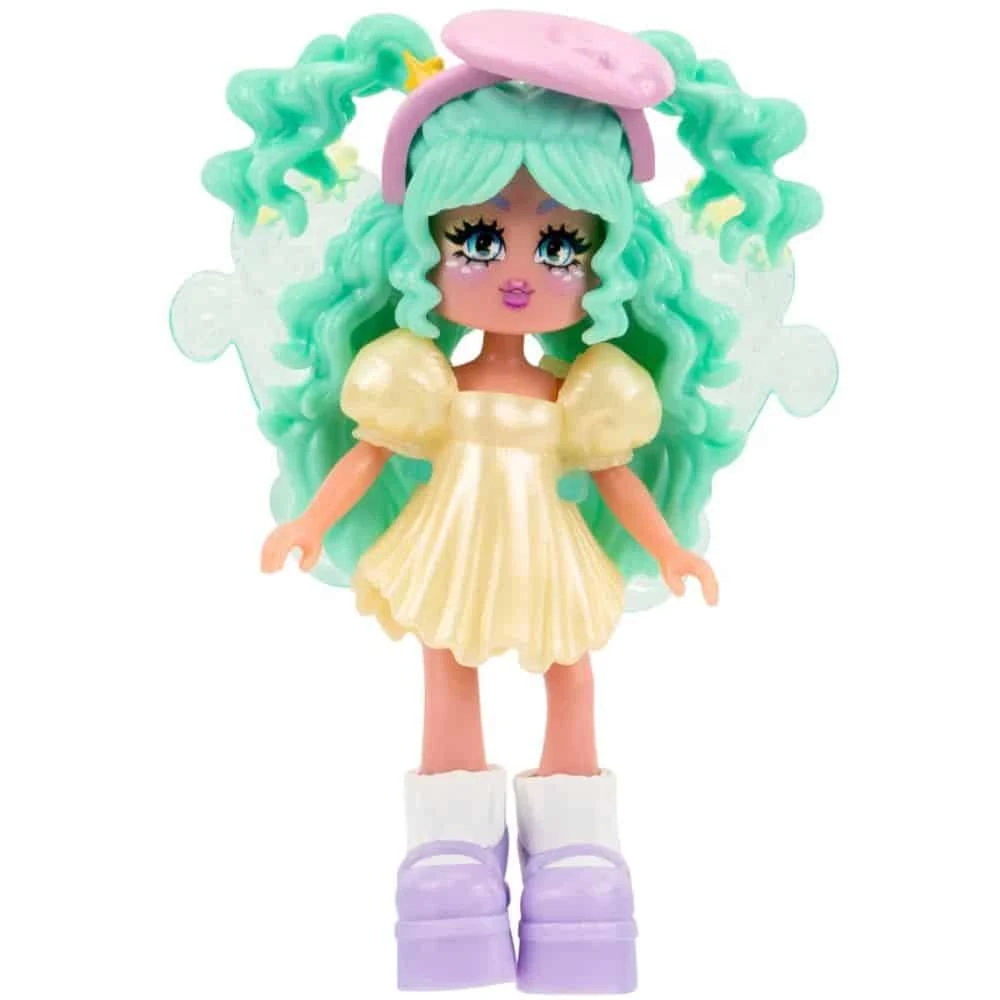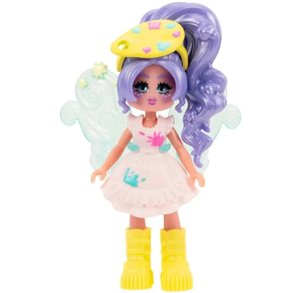 - Pakkauksen sisältö: muotinukke, erilaiset asut ja taidetarvikkeet sekä siivet, joita voi käyttää sormuksena.