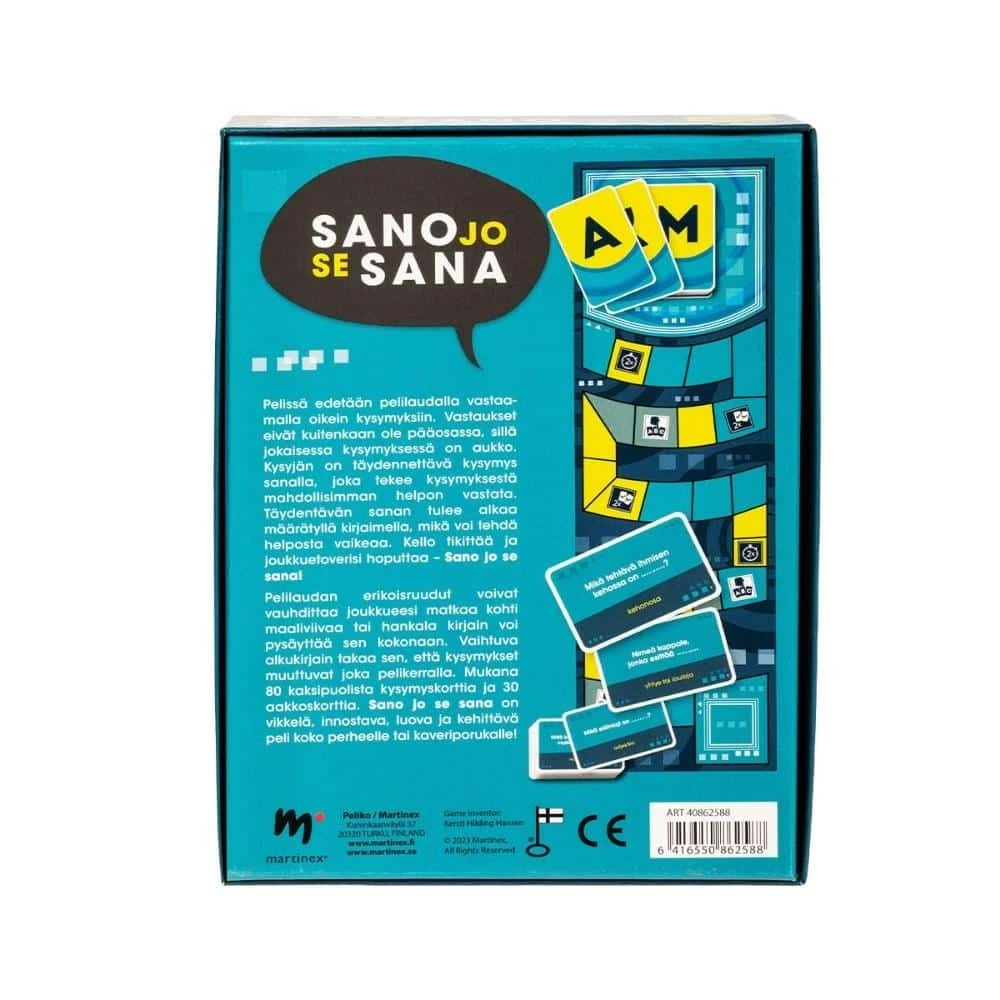 - Peli sisältää 80 kaksipuolista kysymyskorttia ja 30 aakkoskorttia.