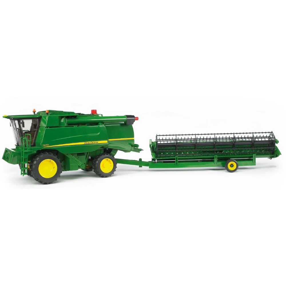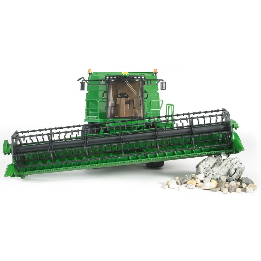 Yksityiskohtainen John Deere T670i leikkuupuimuri. Tukeva ja vakaa metallinen rakenne, Liikuteltava ja irrotettava leikkuuyksikkö. Pyörivä poistoputki, alkuperäisen näköiset vanteet ja toimivat renkaat. Loistava lisä saman mittakaavan Siku Maanviljelijä traktoreihin.