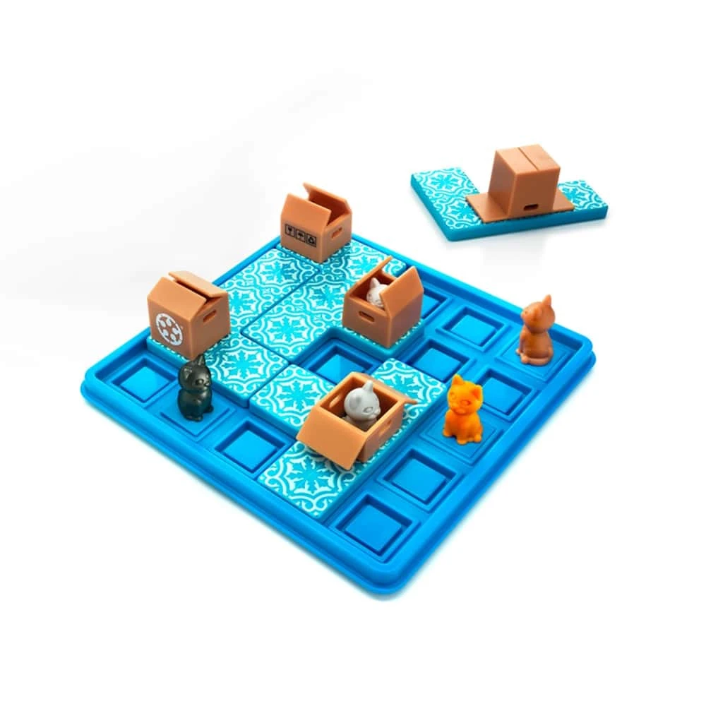 On hauska logiikkapeli, jossa tehtävänäsi on piilottaa kaikki kissat laatikoihin! Siirrä paloja yksitellen ja piilota kissat pahvilaatikoihin yksi kerrallaan. Ratkaisu löytyy siirto siirrolta. Hauska logiikkapeli sopii hyvin niin lapsille kuin aikuisillekin. Suloisesta kissateemasta huolimatta tässä älypelissä riittää haastetta myös paljon pulmapelejä pelanneelle.Pelin päätyttyä pelilauta muuntuu käteväksi säilytysrasiaksi. Peli sopii loistavasti myös matkapeliksi, sillä osat pysyvät tallessa kannen alla. Kivaa tekemistä lapsille automatkoille, junaan tai lentokoneeseen.