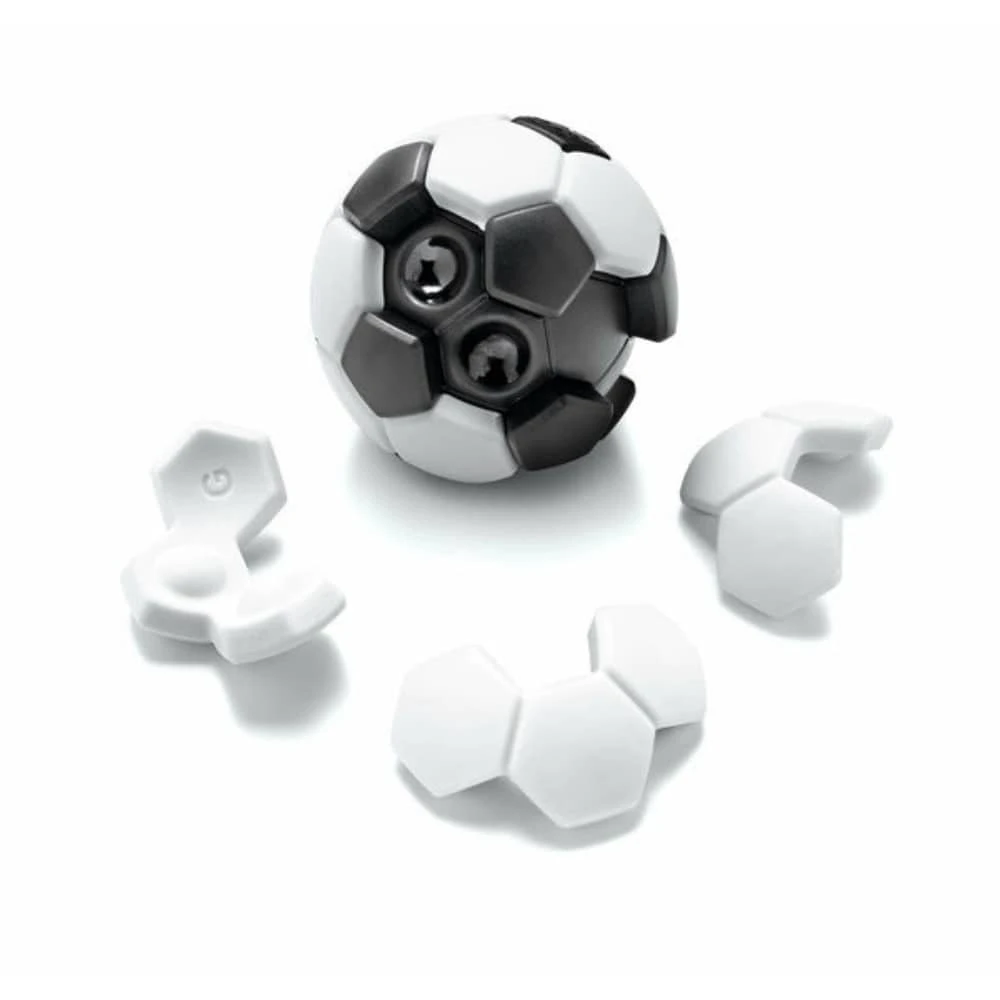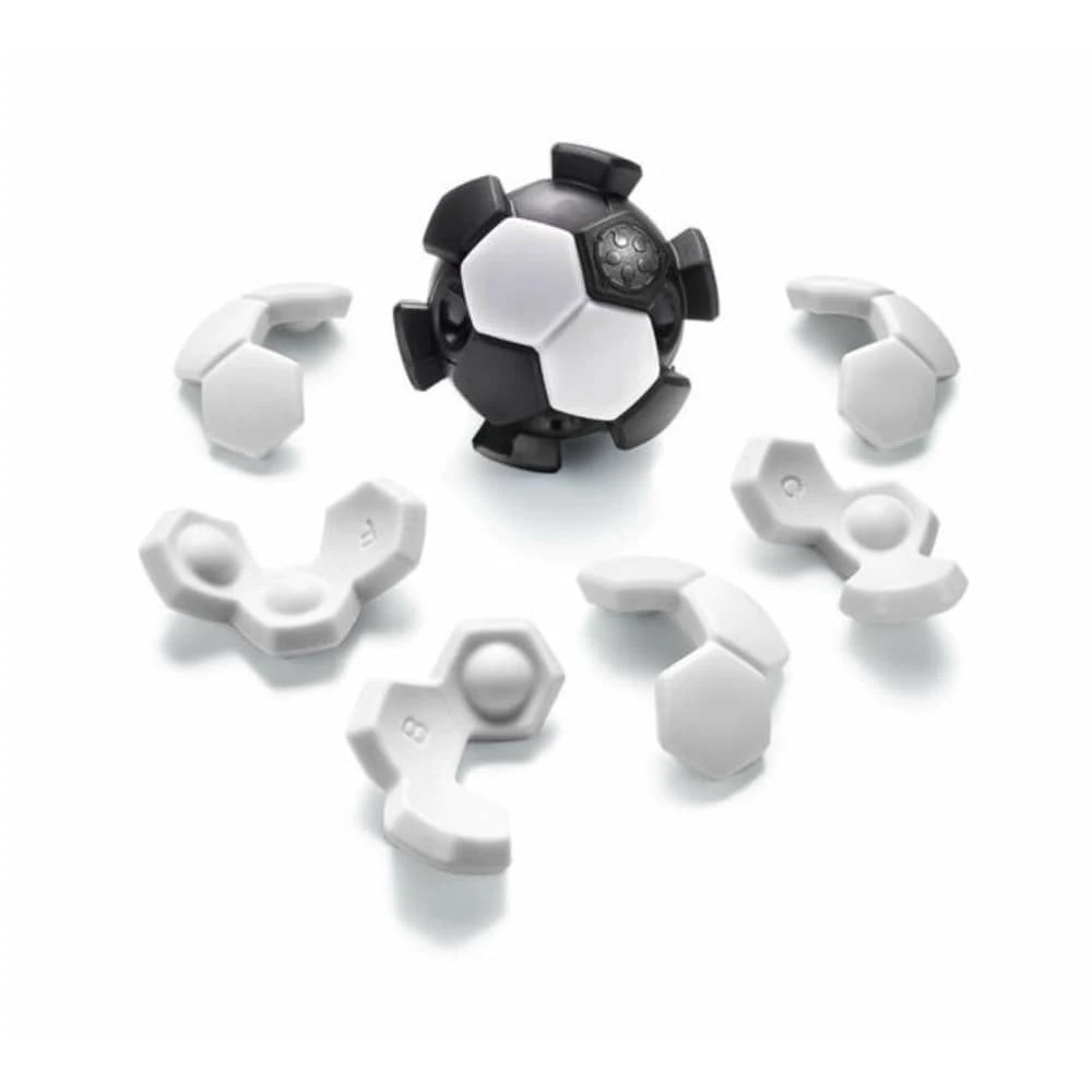 Oletko valmis laukomaan tämän pulmapallon maaliin? Onnistut sovittamalla kaikki seitsemän valkoista palaa palloon. Aloita pienimmästä aloituspalasta ja sovita sitten loput palat osaksi jalkapalloa. Kun onnistut, voit yrittää uudestaan asettamalla aloituspalan eri kohtaan, sillä pallon voi koota monella tavalla! SmartGames Plug and Play Ball on hauska pulmapeli suositulla futisteemalla.