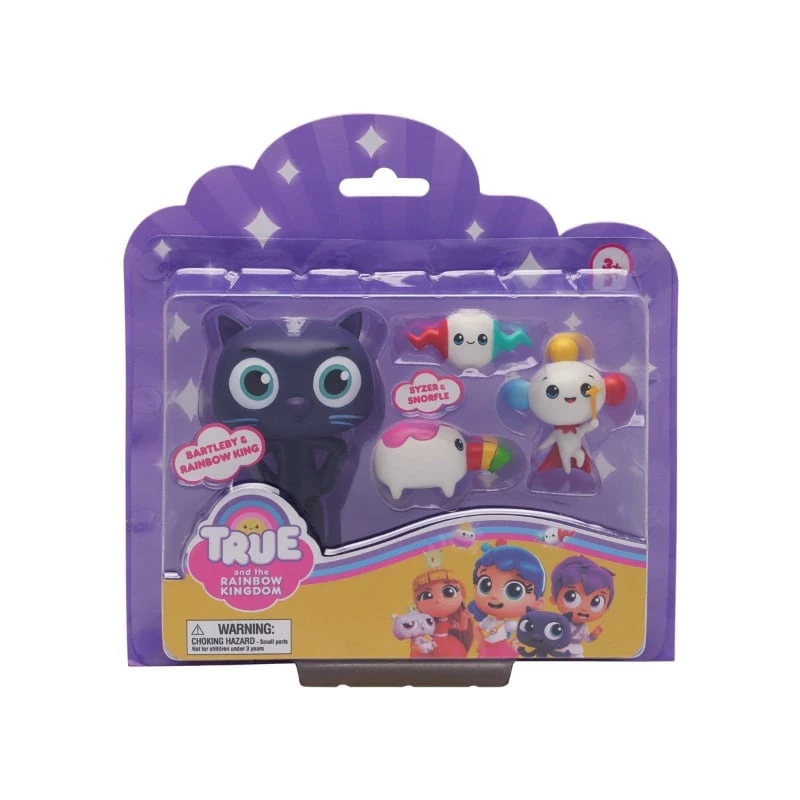 Netflixin animoidusta hittisarjasta Tuire ja Sateenkaarimaa on nyt saapunut leluja. Luo omat hauskat seikkailusi näillä paketeilla, joissa on suosikkihahmojasi Tuire ja Sateenkaarimaasta. Jokaisessa pakkauksessa on neljä eri hahmoa. Näillä suloisilla yhdistelmäpakkauksilla voit luoda omat tarinasi ja seikkailusi ja tehdä toiveistasi totta! Isoimpien hahmojen korkeus on noin 9 cm ja pienempien 2-5 cm. Ikäsuositus: 3+ vuotta.
