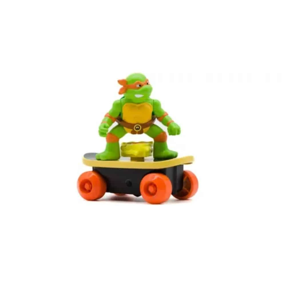 Teenage Mutant Ninja Turtles Switch Kick Skaters on itsestään vakauttava rullalauta, jonka avulla voit tehdä upeita luistelutemppuja ja laskeutua joka kerta kaikille neljälle pyörälle. Rullalaudan sisällä oleva itsestabilisoiva mekanismi (gyroskooppi) saa virtansa kiristyskaapelista. Työnnä vain kiristyskaapeli rullalautaan, irrota se ja voit alkaa tehdä parhaita temppuja Ninja Turtlesilla