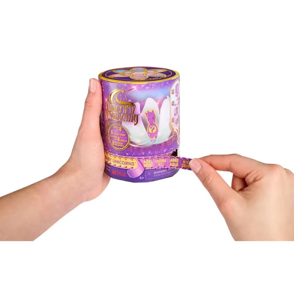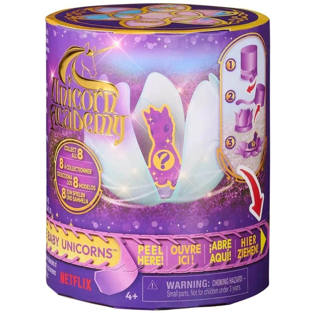 Unicorn Academy yllätyspakkaus, josta paljastuu yksisarvisvauva. Minkä niistä saat? Vedä läppää nähdäksesi yksisarvisesi – kun pakkauksen yläosa on poistettu, helmillä koristellut terälehdet avautuvat ja paljastavat hahmosi. Leikin jälkeen voit asettaa hahmosi esille kimaltelevaan kukkaan. Netflixin animaatiosarjan ja bestseller-kirjojen innoittamana Unicorn Academyn hahmot heräävät eloon. Lapsille, jotka rakastavat yksisarvisia, hevosleluja, nukkeja ja tarvikkeita, nukkekoteja, keräilyesineitä, pehmoleluja ja muuta, Unicorn Academyn lelut ovat täydellinen lahja. Laajenna Unicorn Academyn kokoelmaasi kaikilla söpöillä keräilyhahmoilla.