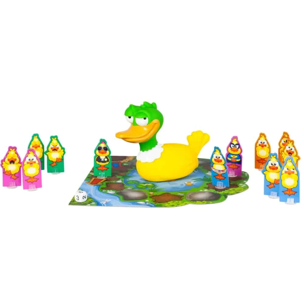 - De små ankorna rusar mot flodbädden! Vem blir den första att komma fram? Hala stenar och pappa-ankans magvridningar gör resan utmanande. Fisarna som pappan släpper kan göra så att du flyger tillbaka till start! Roligt barnspel för 2-4 spelare. 4+